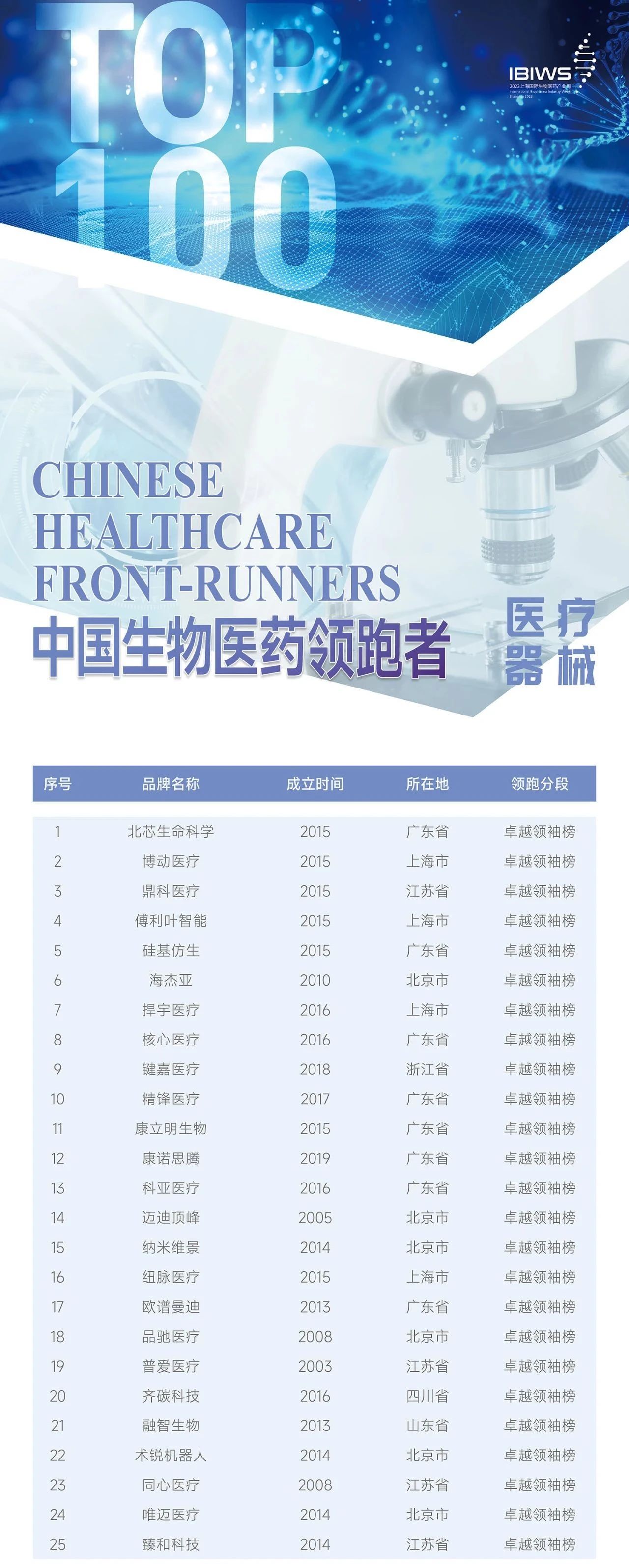 領(lǐng)跑TOP100 | 「海杰亞醫(yī)療」獲評「Front-Runners」醫(yī)療器械賽道第6名!