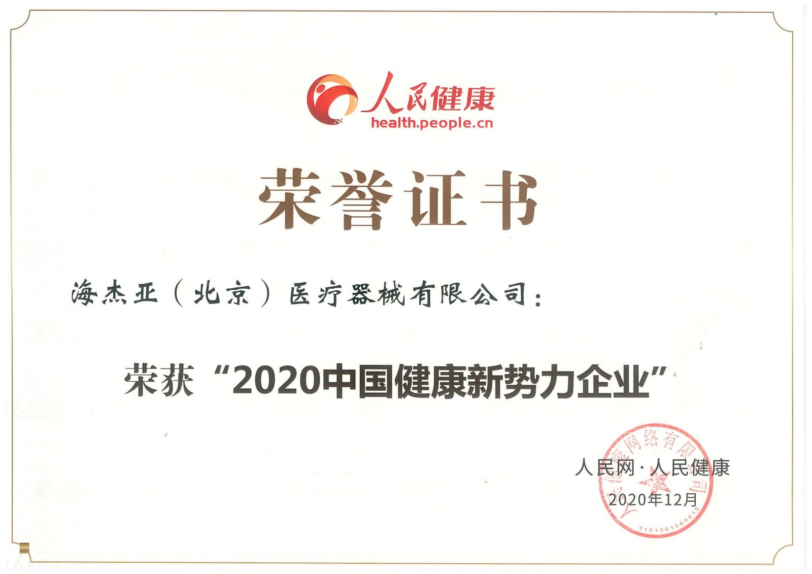 海杰亞榮獲“2020中國(guó)健康新勢(shì)力企業(yè)”